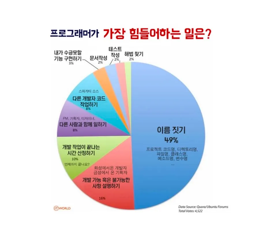 게임에서 캐릭터를 생성하거나 새로운 플랫폼에 가입하면 나의 정체성을 어떻게 표현할까 고민하면서 항상 막히는 것이 바로 “이름짓기”이다. 입사 초기에도 항상 개발하면서 파일을 새로 만들어야 할 때면 난관에 부딪힌다. 닉네임은 발음하기 편해야 하고 나의 정체성이 담겨야 하고 혹시라도 놀림거리가 될 만한 이름은 아닌지도 검토해야 하는 등… 정말 까다로운 고민에 빠진다. 이름을 짓는다는 것은 너무 어렵다. 어쩌면 너무 어렵게 생각하는 것일 수도 있겠다… 이름을 어떻게 지어야 할 것인가? 그리고 그 이름이 그 프로젝트 컨벤션에 부합하는 규칙인가? 개발할 때와 마찬가지로 회사에 입사하는 순간부터 퇴사의 순간까지 불릴 나만의 이름을 짓는 것에 어려움을 느꼈다.