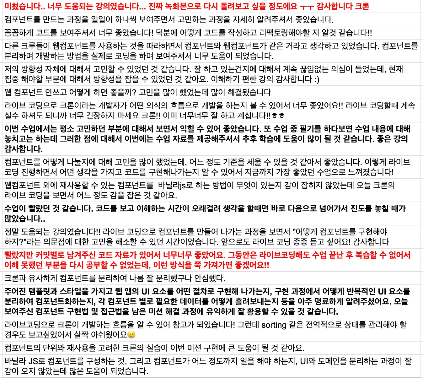 컴포넌트 라이브 코딩 강의를 진행한 뒤 학생들의 격렬한